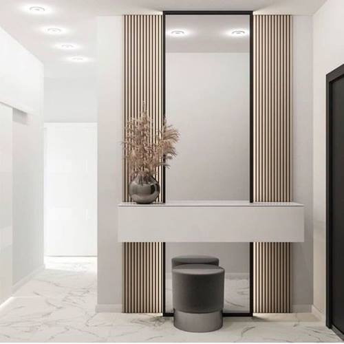 يستخدم مواد جديدة مثل الزجاج، المعدن، والإضاءة الذكية لتحقيق مظهر مبتكر وعصري.